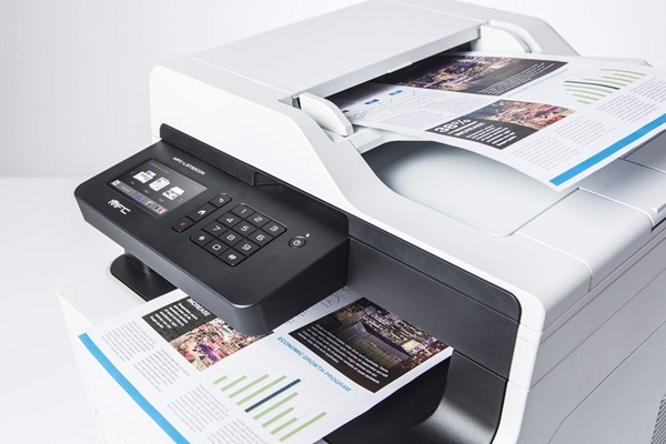 מדפסת משולבת LED צבעונית חסכונית הכוללת כרטיס רשת פקס והדפסת דו צדדית אוטומטית.