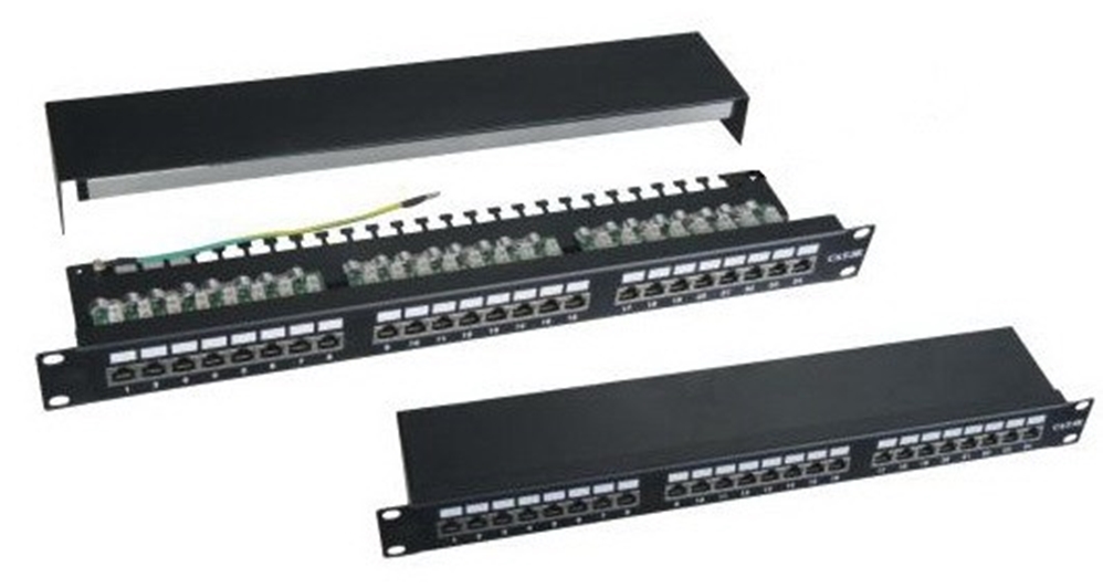 פאצ פנל CAT6a 19″ 1U עם 24 פורטים + קונקטורים מסוככים ותעלה